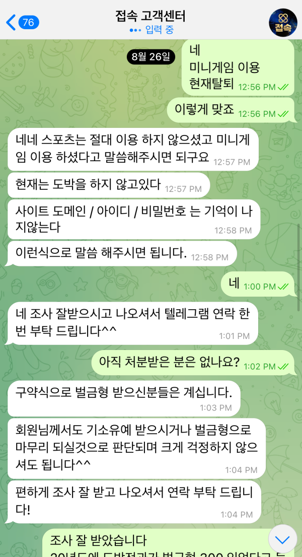 그래서 사이트에 문의했더니 벌금이 나오면 대신 처리해 주겠다고 했고, 그 말을 믿고 조사에 응했습니다.