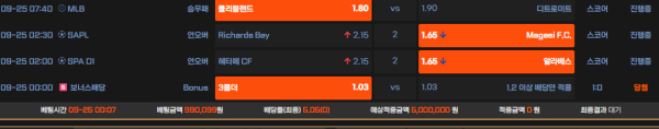 축구랑 야구를 섞어서 3폴더로 배팅했는데 한 경기가 적특 처리돼 있었습니다.