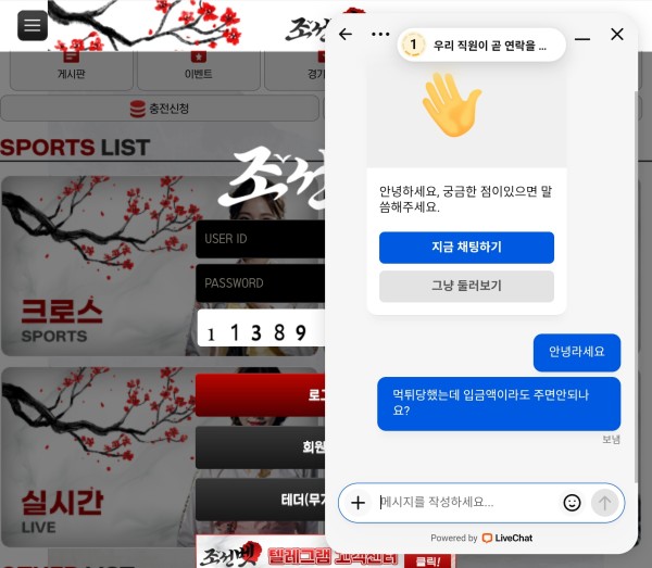 조선벳을 이용하다가 아이디가 갑자기 막혀 먹튀 피해를 봤습니다.