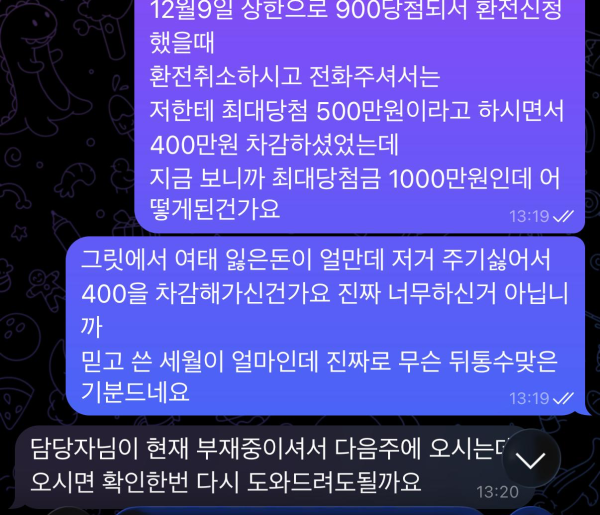 하지만 환전이 취소되고 운영자에게서 전화가 왔습니다.