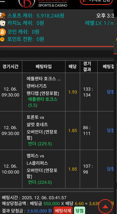 스포츠 3폴더 두 장이 모두 맞아 600만원을 환전 신청했습니다.