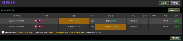 저는 조인이라는 먹튀 놀이터에서 NBA 경기 2폴더로 배팅을 했고 결과는 적중이었습니다.