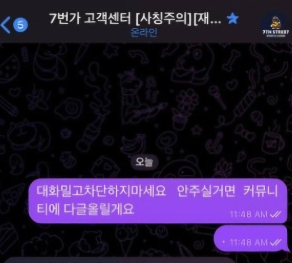 게다가 대화 기록도 다 지워버리고 제 아이디와 텔레그램까지 차단해 버렸습니다.