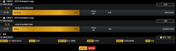 잡리그도 아니고 챔피언스리그를 맞췄는데 양방이라니 정말 황당했습니다.