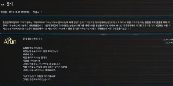아룬 이해할 수 없는 말로 먹튀를 정당화 하고 있습니다.