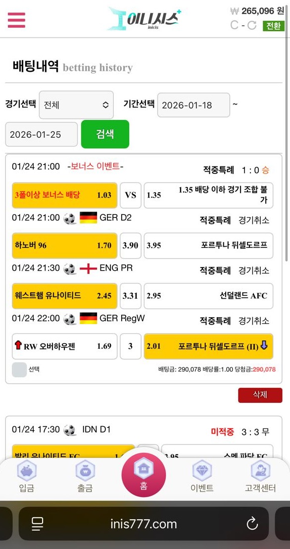 계속 잃기만 하다가 이번에 해외축구 3폴더가 맞아서 250만원을 만들었습니다.