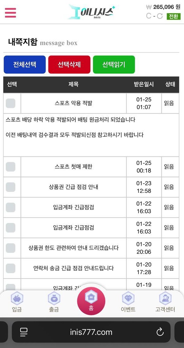 그래서 확인해봤더니 악용 배팅이라며 취소했다는 쪽지가 와 있었어요.