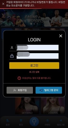 그래서 다시 접속을 시도했는데 없는 계정이라는 문구만 계속 뜨고 전혀 들어가질 않았습니다.