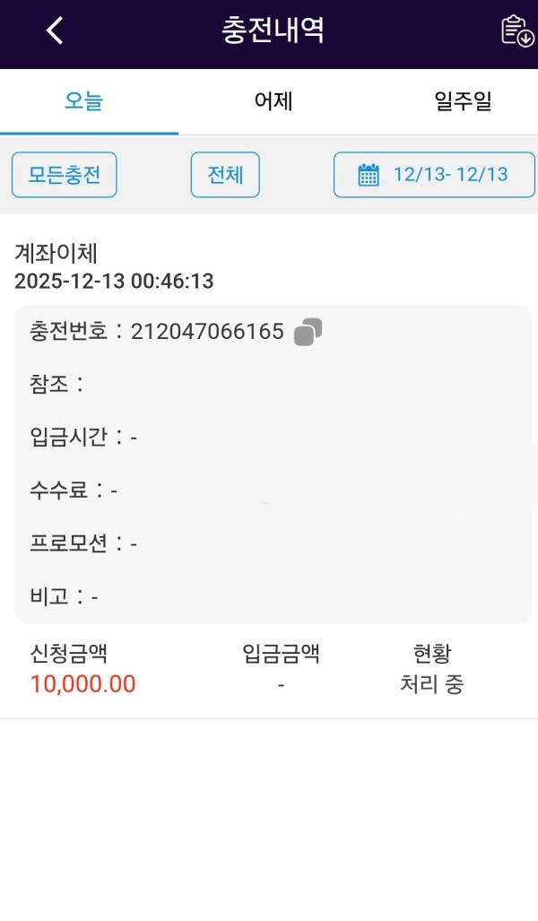 그래서 제 돈을 충전했는데 계좌 확인까지 하고 1만원을 입금했음에도 충전이 전혀 되지 않았습니다.