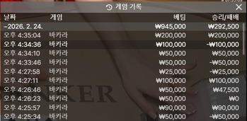 충전금을 잃고 다시 40만원을 입금한 뒤 바카라를 하다가 어느 정도 금액이 올라서 환전을 신청했습니다.