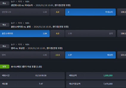 100만원 충전해서 NBA 3폴더 배팅을 했고, 결과까지 적중한 걸 확인했습니다.