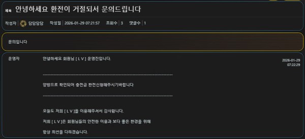빌바오 경기와 챔스 경기 등에 40만원을 베팅해서 적중했음에도 환전이 거절됐습니다.