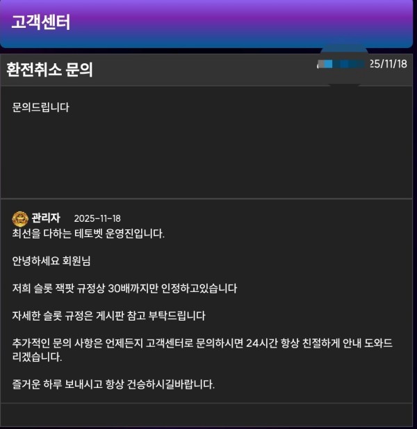 그런데 갑자기 규정을 들먹이면서 슬롯 당첨금은 30배까지만 인정된다고 하더라고요.