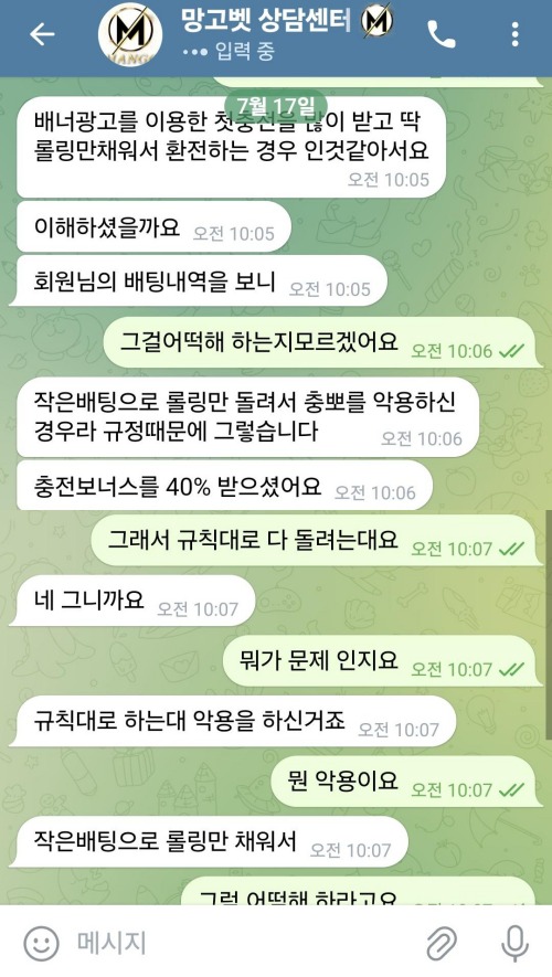 결국 끝까지 환전은 안 해주고, 규칙대로 해도 악용이라며 말도 안 되는 소리만 반복합니다.