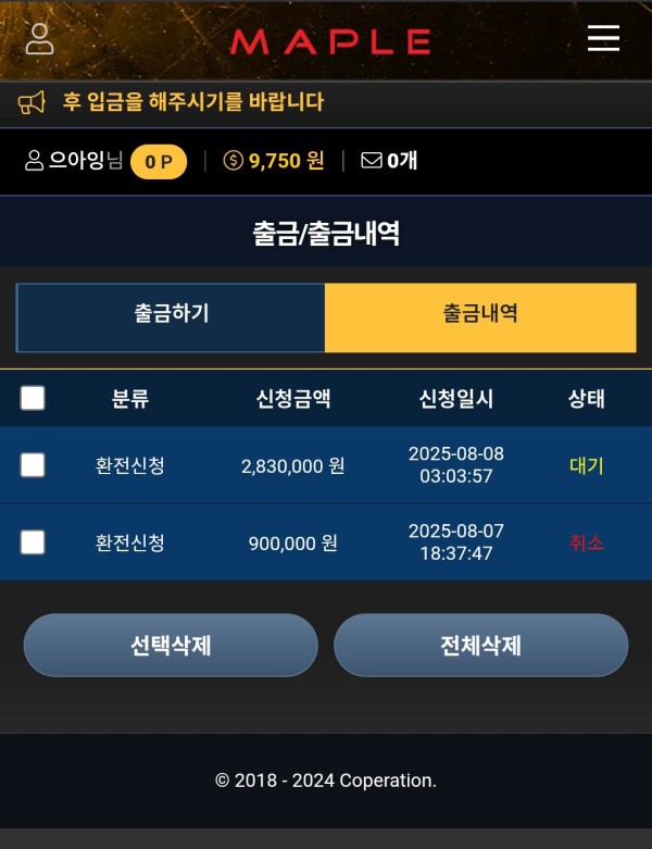 환전 신청하자마자 갑자기 취소되더니 1.70 이상 배당의 2폴더로 전액 재배팅하라고 하더라고요.