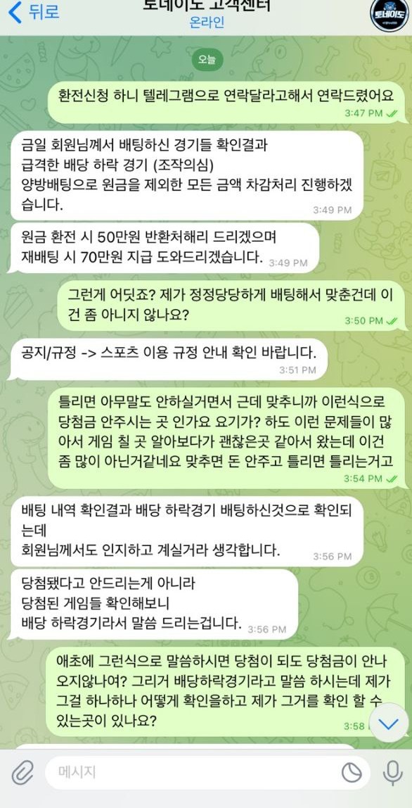 몇 시간 뒤 연락이 와서는 배당 하락 경기만 골랐다고 규정 위반이라며 당첨금을 몰수한답니다.