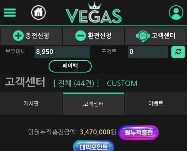 베가스라는 곳에서 이벤트가 좋아 보여 가입했습니다.