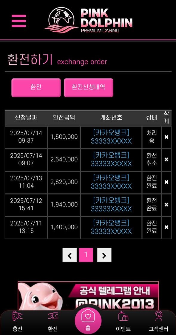 핑크돌핀 입벌구 먹튀사이트, 환전을 기대한 제가 멍청했네요.