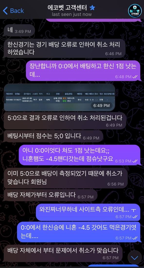 그런데 환전 신청하자마자 배팅 규정을 들먹이며 환전을 취소했어요.