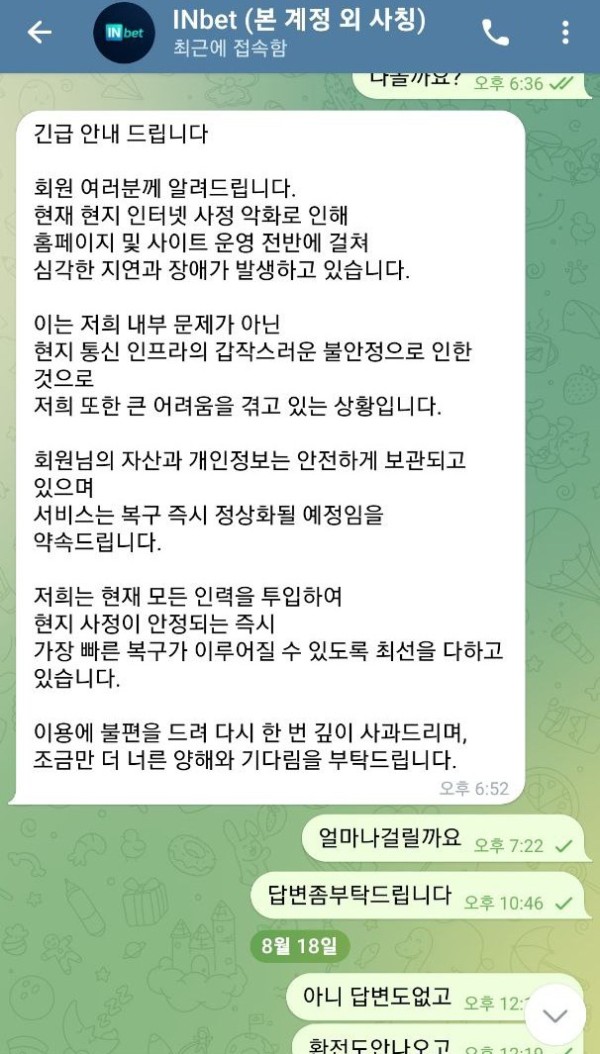 텔레그램은 읽지도 않고 사이트 문의도 답이 없더라고요.
