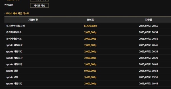 그래서 급하게 배팅 내역을 캡처하려고 했는데 적중돼 있던 경기들이 전부 낙첨으로 바뀌어 있었어요.