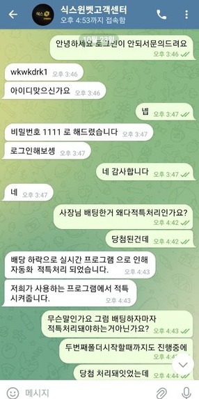 이상해서 텔레그램으로 비밀번호 변경까지 요청한 뒤 다시 접속했는데요,