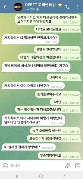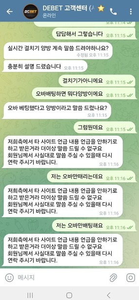 고객센터에 물어보니 제가 다른 사이트랑 동시에 작업 배팅을 했다는 이상한 말을 하더라고요.