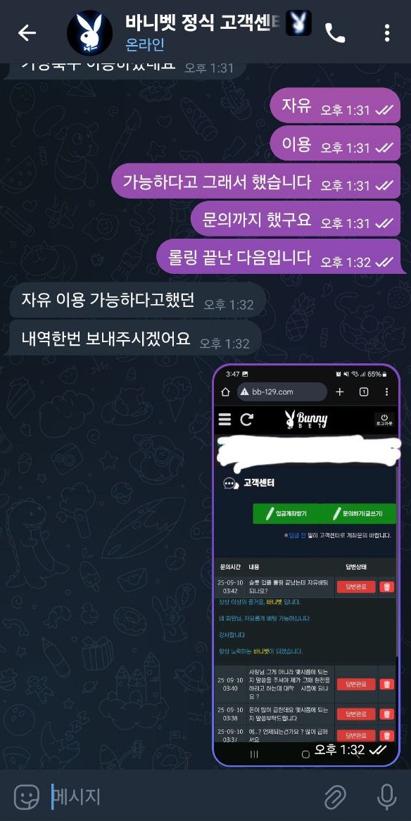 결국 기다려도 아무 변화가 없었고 끝내 60만원을 먹튀하고 저를 차단해 버렸습니다.