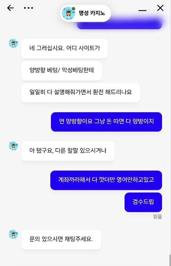 그렇게 시간이 지나 다시 물어보니 제가 양방이라고 통보했다며 이상한 사진 한 장을 보내더라고요.