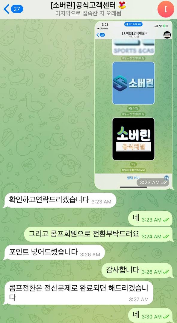 그리고 그렇게 담당 실장 텔레그램이랑 고객센터까지 전부 차단당했습니다.