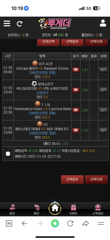 투게더에서 스포츠배팅 하고 내역 인증 하러 왔습니다.