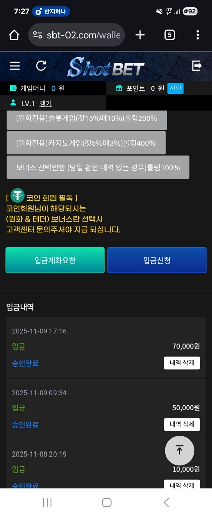 일단 샷벳 여기는 충환전 속도가 엄청 빠른 사이트입니다.