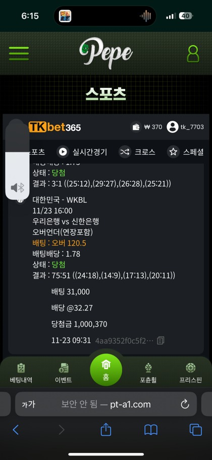 일단 오늘 저는 3만원으로 100만원 환전 받았고요. 스포츠로 배팅했습니다.