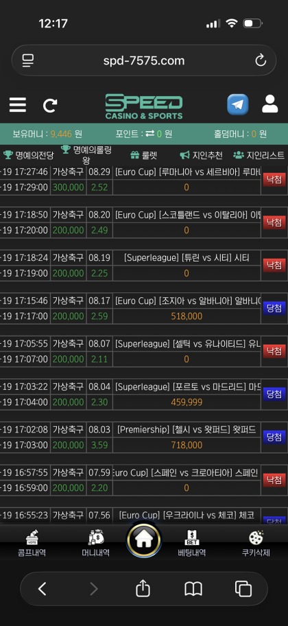 충환전도 빠르게 잘 나옵니다. 그리고 가상 축구 같은