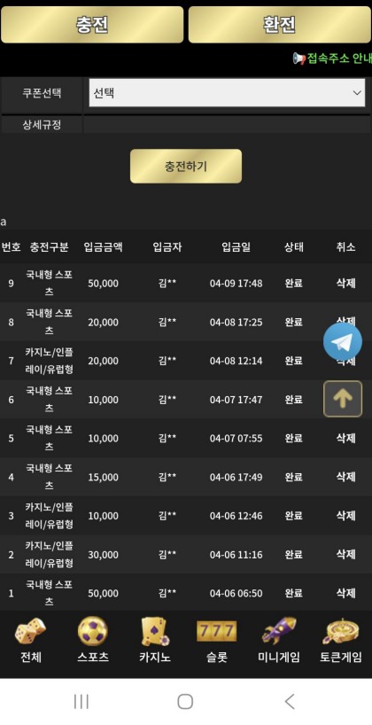 이끌림 매충, 돌발, 지인, 스포츠, 미니게임, 카지노 등등