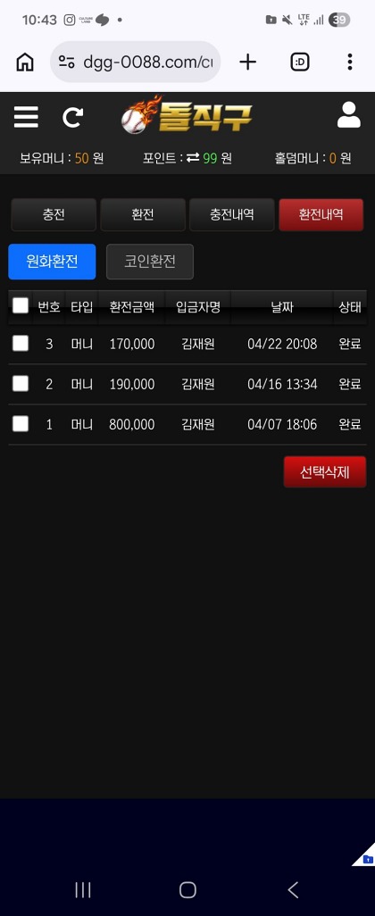 돌직구 충환전 속도 하나는 정말 최고인 토토사이트 입니다.